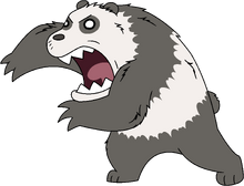 In his primal form, Panda Bear is very hairy with bleak white eyes as well as sharp teeth. His strength is also augmented greatly in this stage.